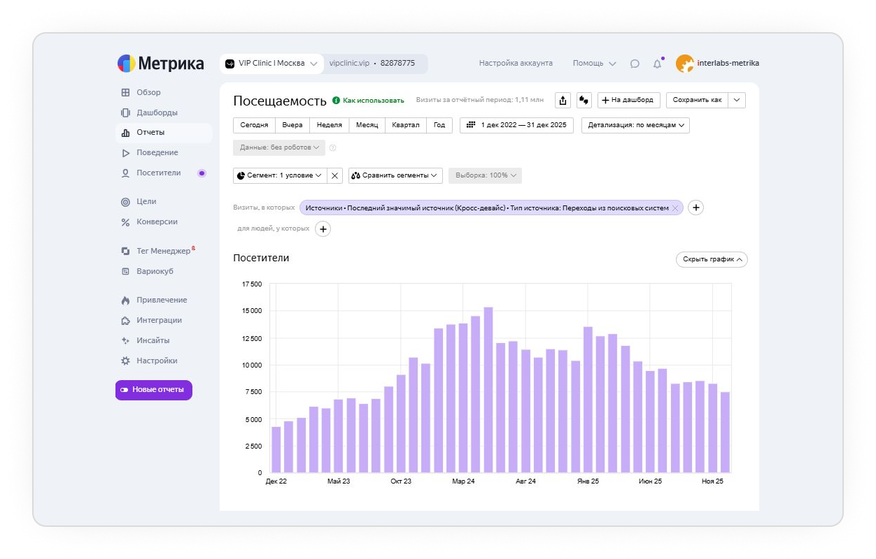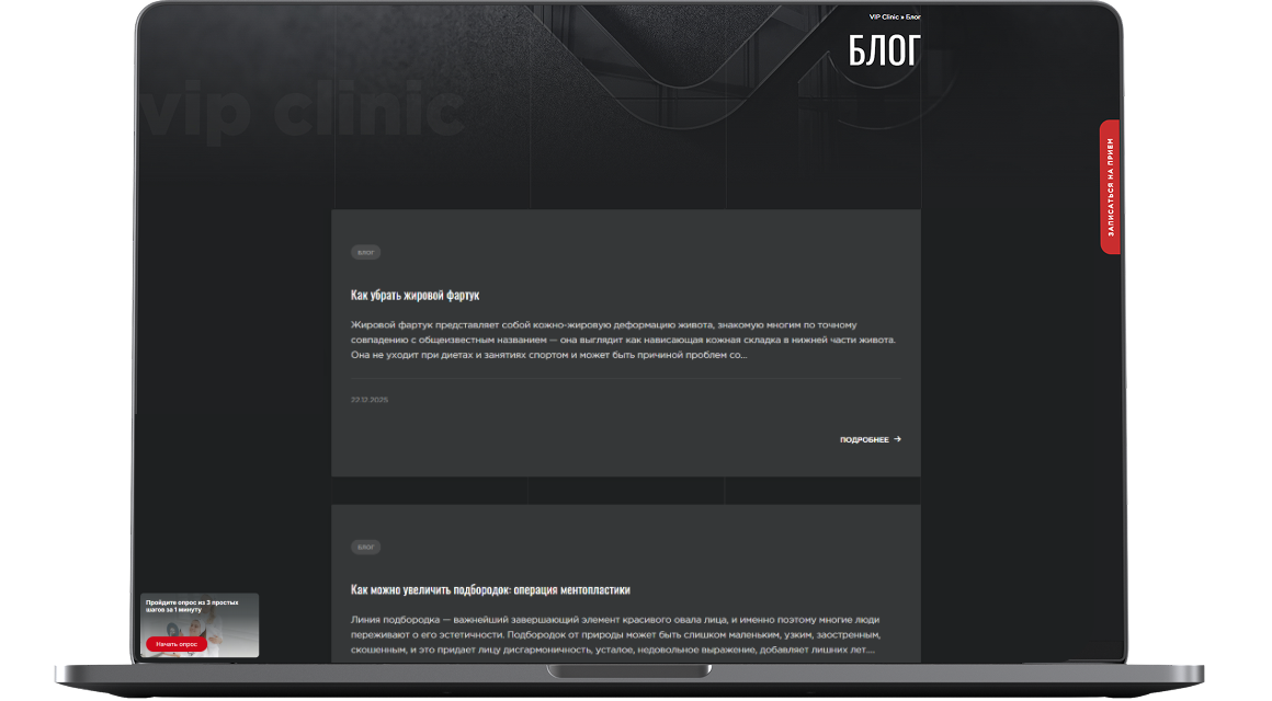 Написан, оптимизирован под поисковые запросы и размещён контент по услугам клиники.