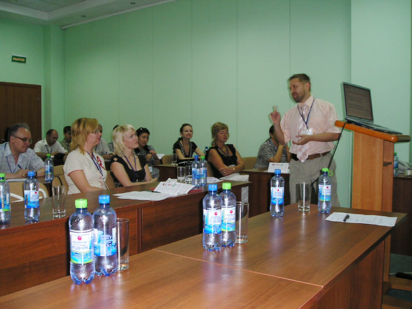 В «Поиск Конференс» прошёл семинар, посвящённый Интернет технологиям и увеличению продаж. Несмотря на июльскую жару и сезон отпусков, свободных мест в аудитории не было. 29 участников из 25 компаний посетили мероприятие с целью повысить свой профессиональный уровень, а также поделиться опытом друг с другом.