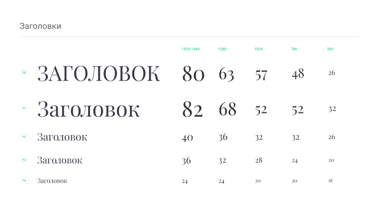 заголовков разных уровней.